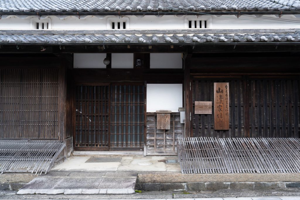 宇陀市の南西部に位置する宇陀松山は、中世から江戸時代にかけて松山街道の宿場町として栄えた歴史ある城下町。松山城の城下として整備された町並みには、当時の商家や医家、町人の暮らしを今に伝える町家が軒を連ねる。特に薬の商いが盛んで、「薬草のまち宇陀」として全国に名を馳せた。古地図に見る碁盤目状の街路は今も残り、歴史を感じさせる重厚な屋敷と白壁の蔵が、往時の繁栄を静かに物語っている。歩くたびに、時代の香りと人々の息づかいが感じられる。